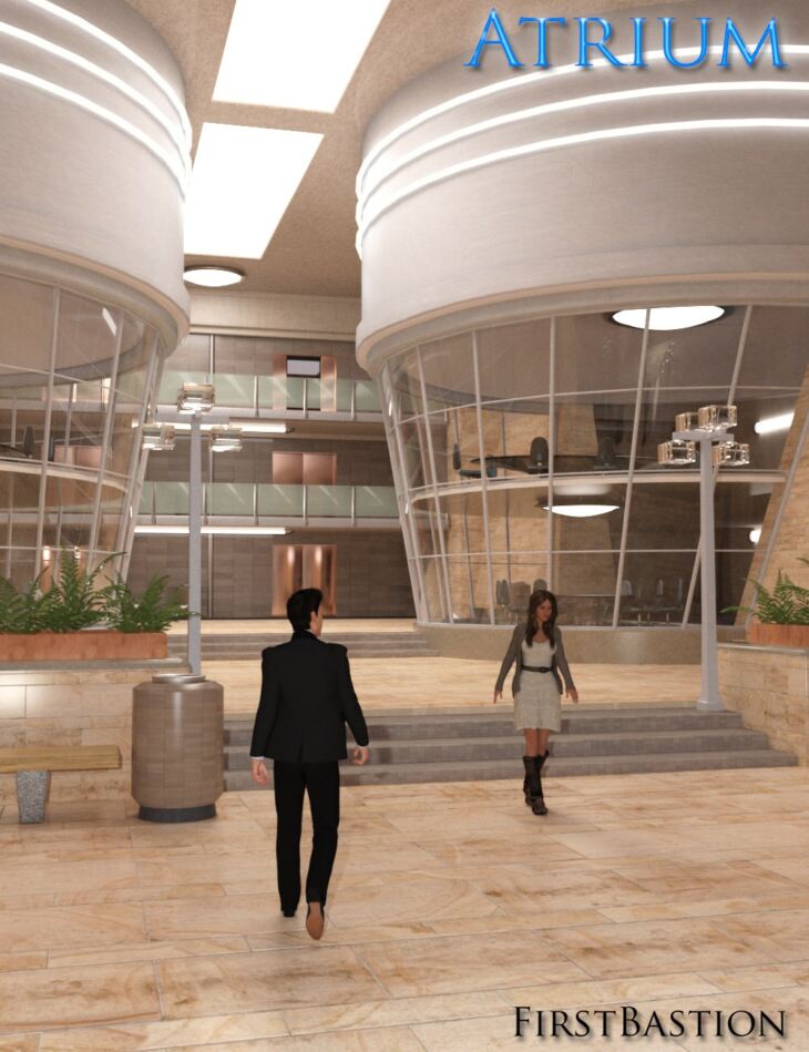 1stBastion's Atrium is an full 3D interior props set for Daz Studio 3Delight and Iradium. The one click load full scenes includes the optimized light set and materials for the two Daz Studio render options.