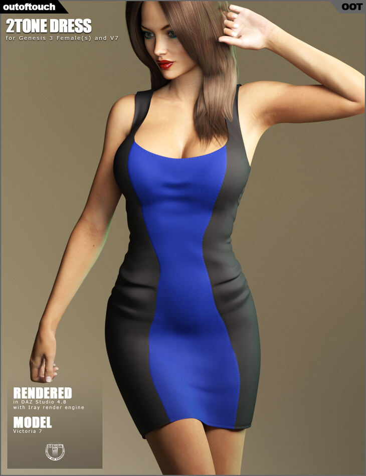 The 2Tone Dress is a high quality conforming fashion dress for Genesis 3 Female(s).