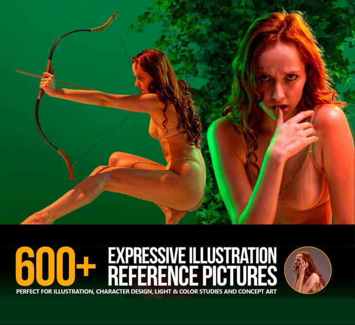 This set features over 600 high-res reference pictures with expressive female poses. The pack includes different lighting setups, body curves, lots of different expressions and more. Some images were inspired by Poison Ivy character. It will be an awesome tool for color studies, illustration and concept art.