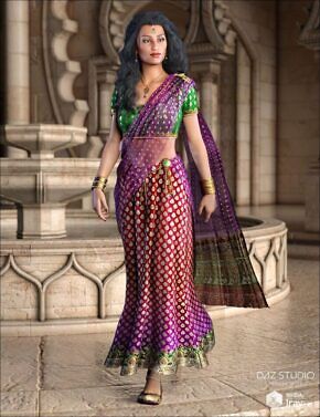 This is a saree outfit for Genesis 9, complete with accurate pleats and animated dForce poses to help you achieve the most realistic renders.