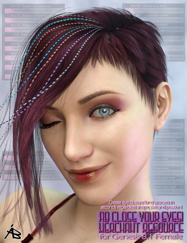 AB Close Your Eyes! for Genesis 8.1 Female (MR) is a set of morphs specifically designed to increase the precision and speed up the customization of eye closure for characters.