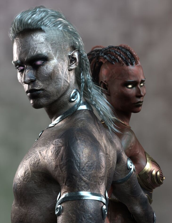 AB Horror Elves Skins and Shaders is a set of materials for Genesis 9 (Feminine and Masculine) to add a horror or gothic effect to all fantasy scenes and renders.
