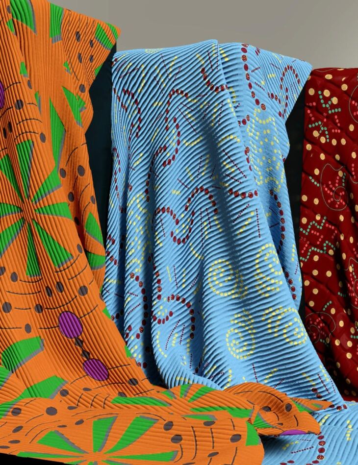 Abstract One Fabric Shader MR is a unique set of hand-painted Iray fabric shaders you can use for blankets, clothing, and more.