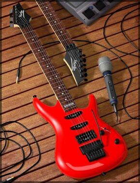 A highly detailed Electro Acoustic Guitar, stand and stool. The guitar comes with 7 different material presets for Poser and Daz Studio as well as 4 poses for M4 and V4, 2 sitting poses and 2 standing. The guitar is parented to the left hand.