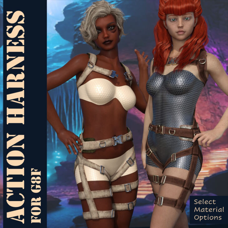 The Action Harness ia a Harness set for the Genesis 8 Female figure for use in DAZ Studio using iRay.