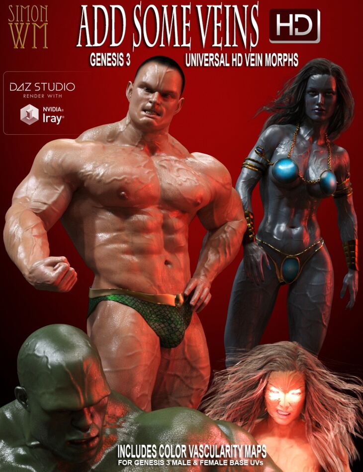 Add Some Veins HD is a collection of HD Morphs for Genesis 3 Male & Female which is compatible with any humanoid morph character based on Genesis 3.
