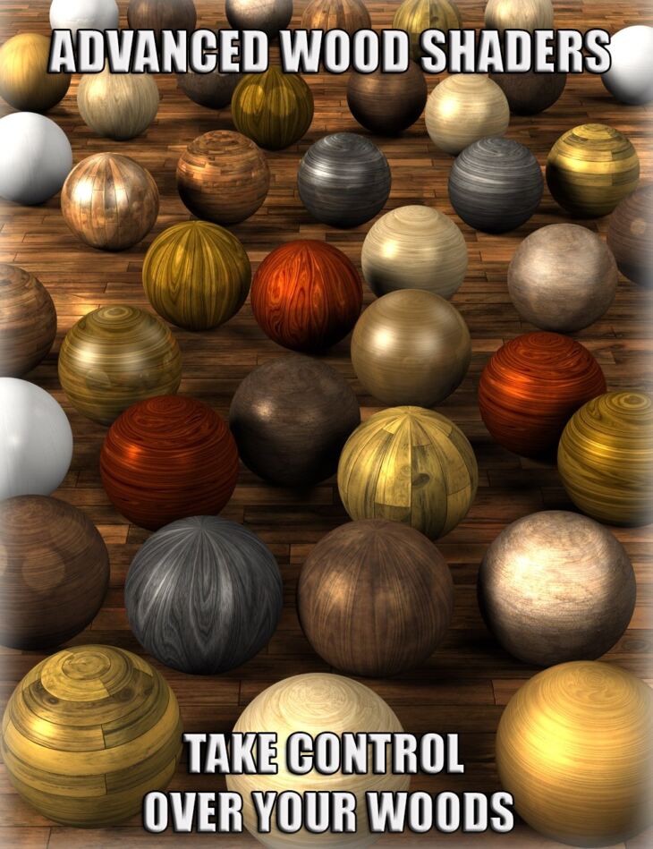 Advanced wood shaders is a set of 120 wood shader presets directly applicable on any surface. They are divided in 10 families of patterns, available in 2 orientations (vertical or horizontal), all of them coming with 6 specular models.