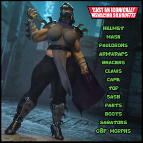 This outfit comes with many of V4's Morph ++ morphs as well as Aiko 4's Aiko Body, Realistic, Stylized and Petite morphs, the Elite Morphs Utopian, Sylph and Fantasia and the Girl 4 morphs.