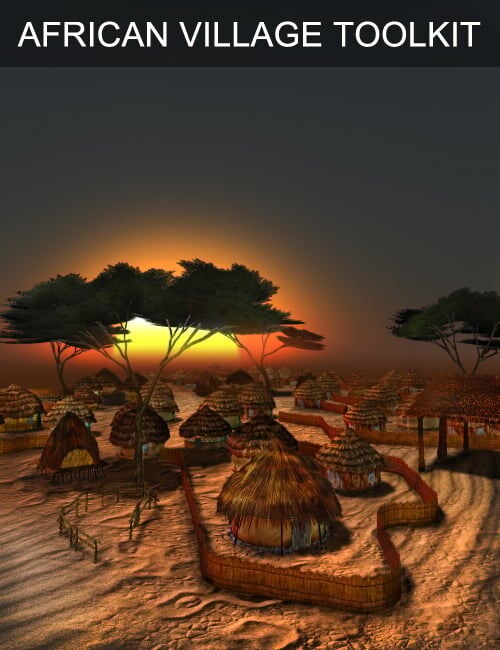 The "African Village Toolkit" is a Poser and Daz compliant prop library that you can use to create a large, complex, diversified African village typical of Namibian, Botswana, Zimbabwe and South African area through the use of several props, objects and procedural scripts included in the package.