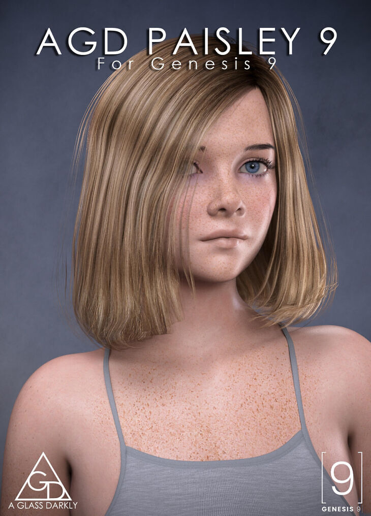 Introducing AGD Paisley for Genesis 9. Paisley is a petite figured character that comes in two morphs, one at age 18, and one at age 30.
