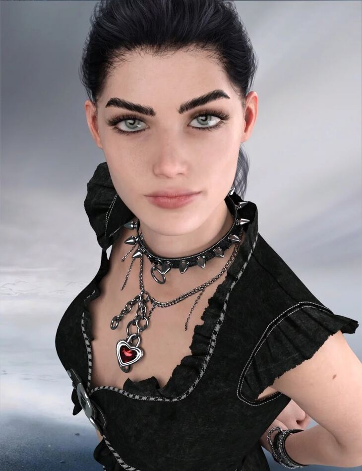 Aisling is a unique character for Charlotte 8 with pale skin, dark hair and expressive eyes. Her skin is entirely painted using high quality photographic references.