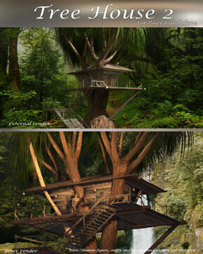 This package contains 3 additions (props) for «Tree House 2» figure :Rope Bridge, Terrain 2 and Water.