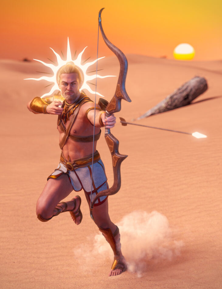 Inspired by the Greek god Apollo, the Ajax Outfit for Genesis 8.1 Males is a multi-piece set complete with an outfit, crown, quiver, and a mighty bow with 3 material presets. Add it to your collection and embark on a fantastic journey through ancient Greece.