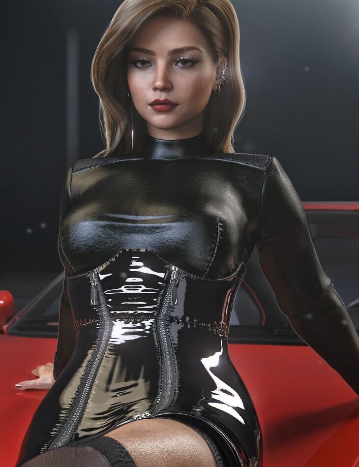 Introducing AJC Chic Couture Outfit For Genesis 9 ensemble! Elevate your style with our stunning skirt, top, stockings and boots collection, available in both leather and latex options.