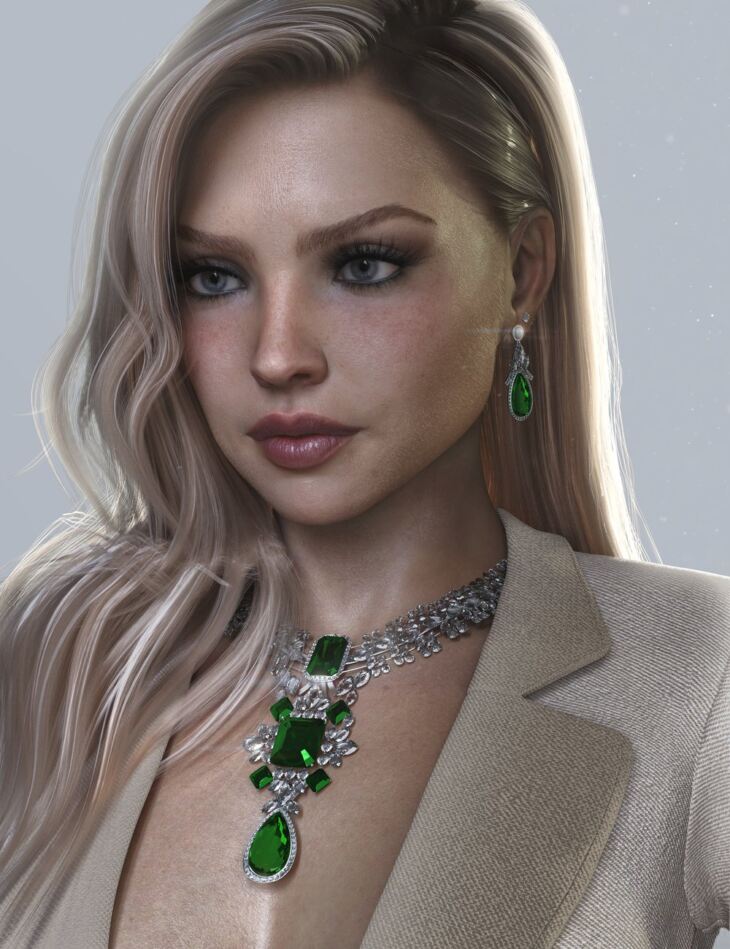 The AJC Precious Lady Jewelry for Genesis 9 set features detailed pieces to make your chic scene even more luxurious. This set consists of 5 pieces: a necklace, a pair of earrings, and 3 rings.