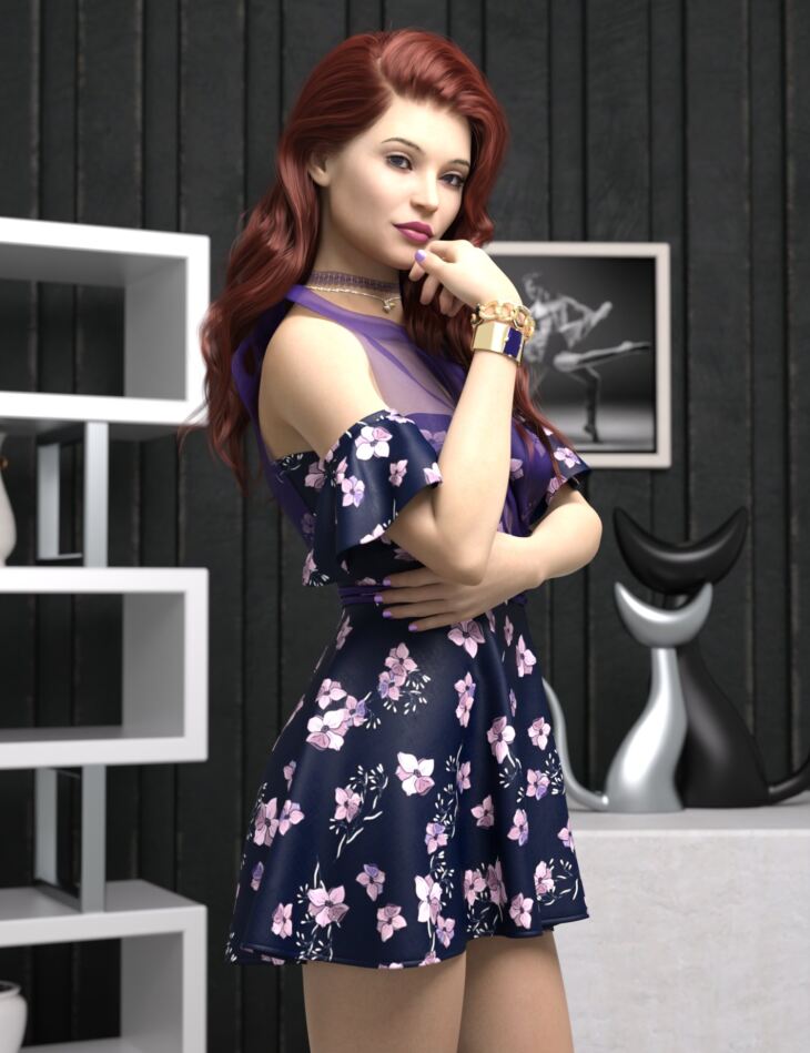 Alaina is a custom adult-aged female character for Genesis 8 Female. Change her eyes, lips, and nails with 8 color presets for each.