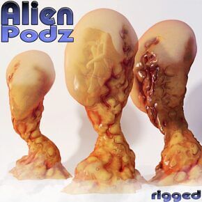 The Alien Autopsy contains 5 internal organs and a ribcage prop all with Iray SSS texture options. Props include small and large organ jars with lids and jar juice.
