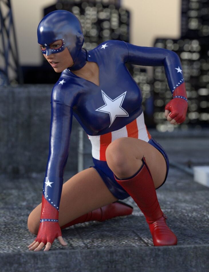 The All American Hero body suit was designed to be super sexy, yet functional at the same time. Hand painted 4k PBR textures.