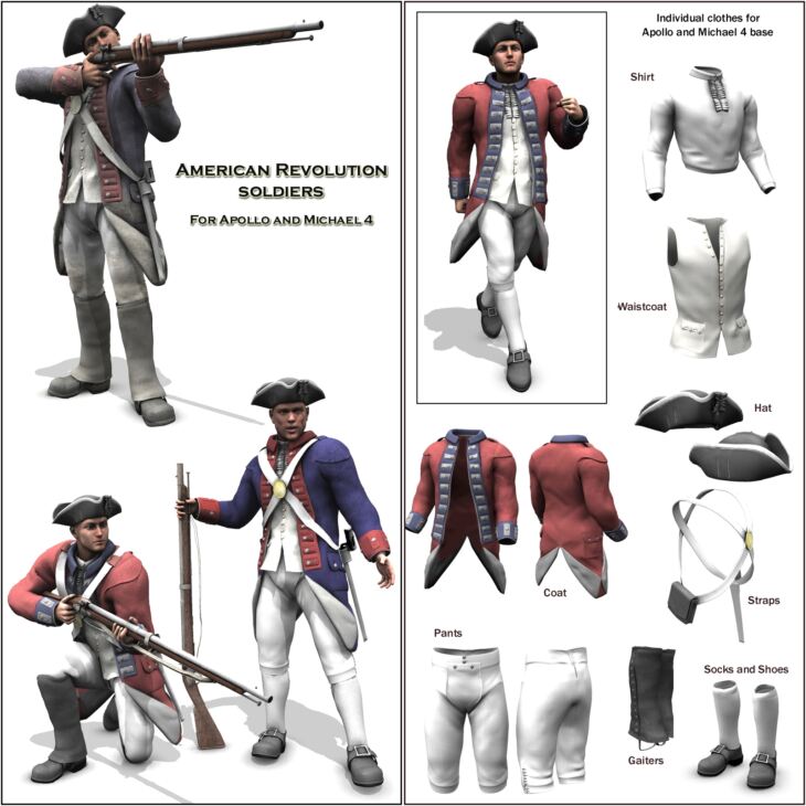 This is a fantastic pack to transform Apollo Maximus and Michael 4 into a American Revolution soldier.