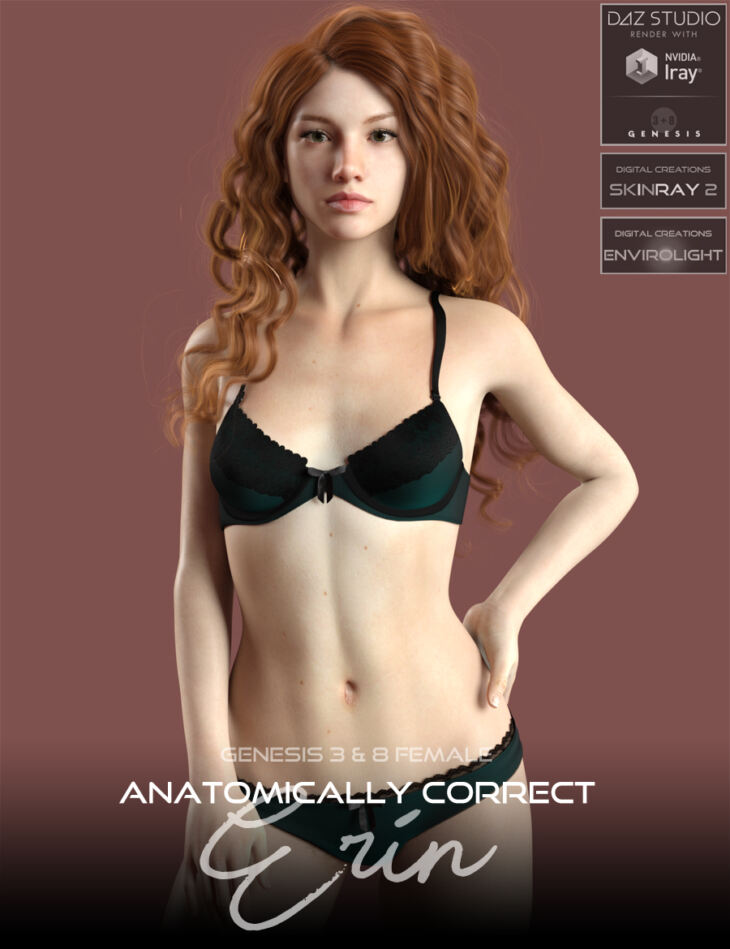 Anatomically Correct Erin for Genesis 3 and Genesis 8 Female.