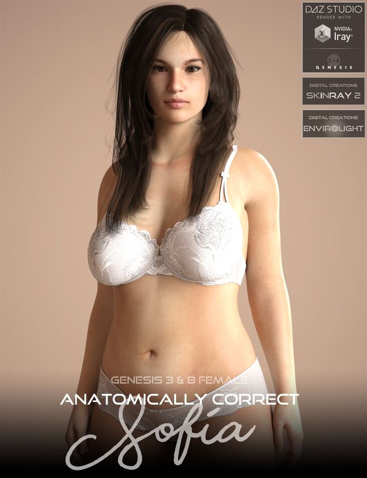 Anatomically Correct: Sofia for Genesis 3 and Genesis 8 Female.
