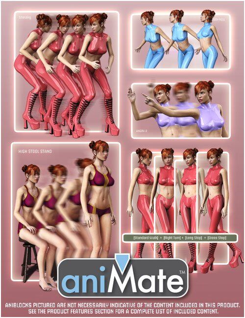 This is a promotional sample of the currently available aniBlock content packs. These aniBlocks come from the Walk Construction Kit, Gestures 1, Dance Club Moves 1 and Transitions: Sits 1 packs.