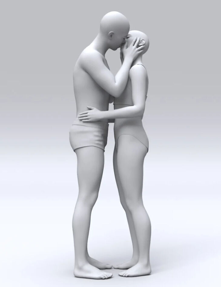 The product contains three full-body paired (male and female) animations expressing feelings of tenderness and love.