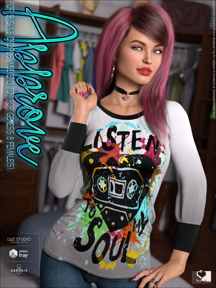 Approve is a brand new texture pack for Sveva's dForce Weekend Top for Genesis 8 Female(s), with this pack you'll get 12 new fully detailed high-resolution texture styles.