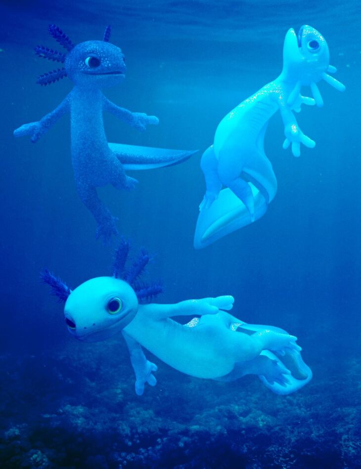 Aquarius Poses for Genesis 3 and 8 Male and Toon Axolotl