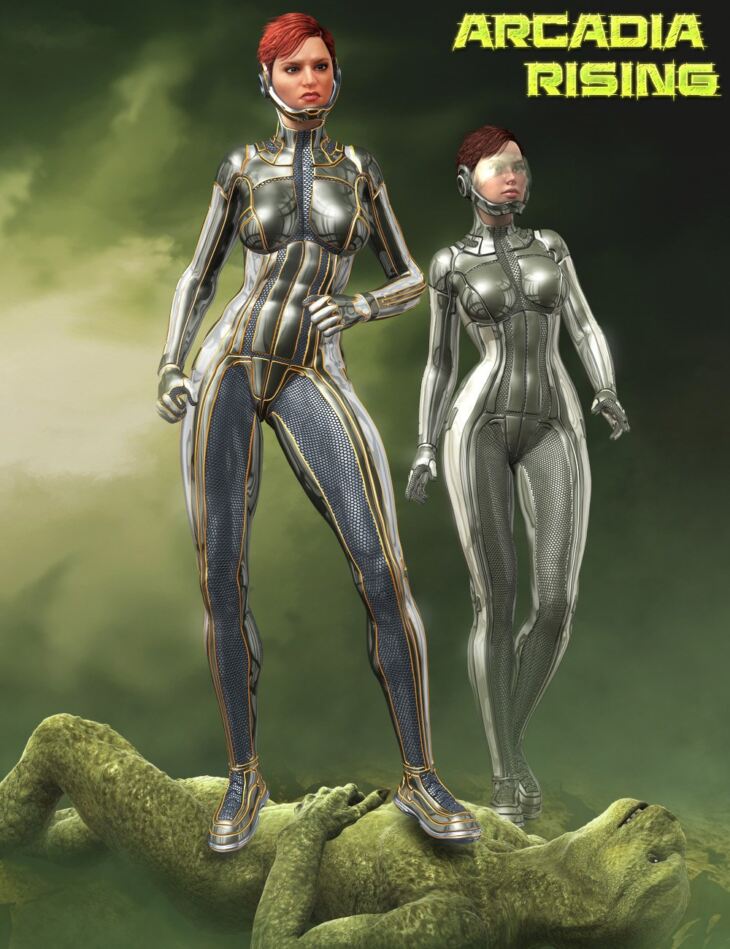Arcadia Rising is a new Sci-Fi outfit for Genesis 2 Female(s). With conforming Bodysuit, Gloves, Shoes and Mask. It will fit 10 different figure shapes see details below.