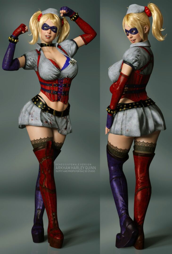 Arkham Harley Quinn Outfit for G8F and Daz Studio.