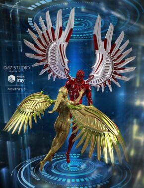 It's packed with morphs to modify one wing or the pair of wings. The figure poses included are just for Genesis 3 (Male/Female) and Victoria 4/Michael 4.