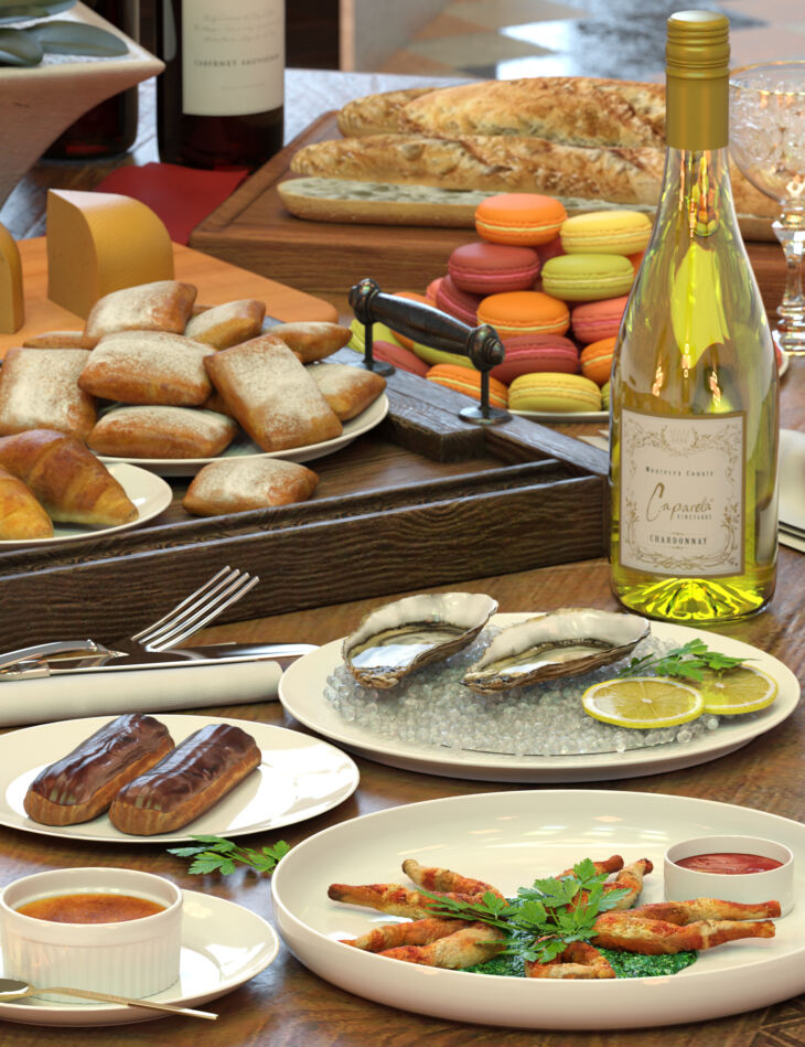 Assorted Cuisine and Pastries is a delicious French food prop set with enough variety to round out a full dinner spread. Get ready to wine and dine with a realistic collection of props, shaders, and materials for a delightful dining experience.