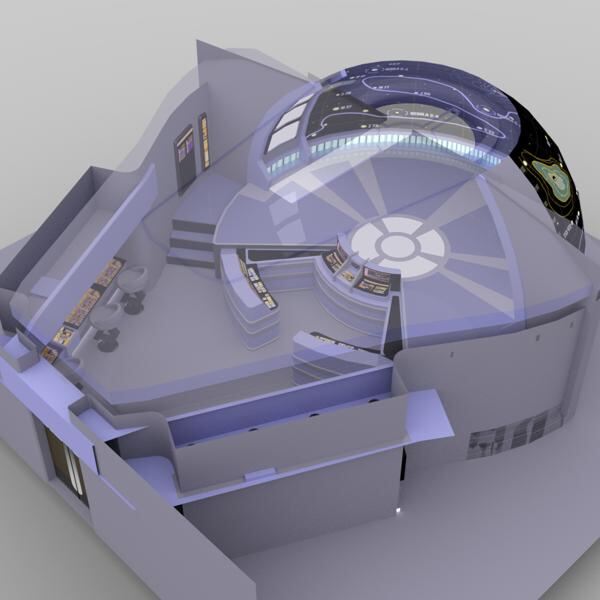 Wall stations (with chairs) allow crew members to run simulations or monitor other ship systems.