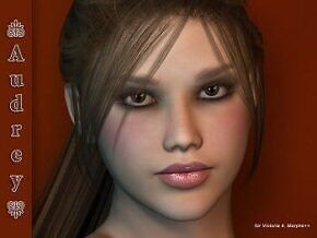 Audrey is a custom morph refined in ZBrush. Her body shape utilizes the Elite and V4 Morphs ++, ensuring that upgraded clothing will fit.