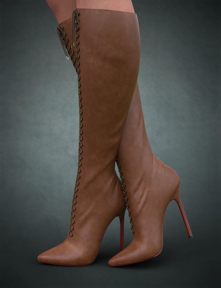Make your character the star on every red carpet, where all cameras will point at her in a blink, with the Ava High Heel Boots for Genesis 3, 8, and 8.1 Females.