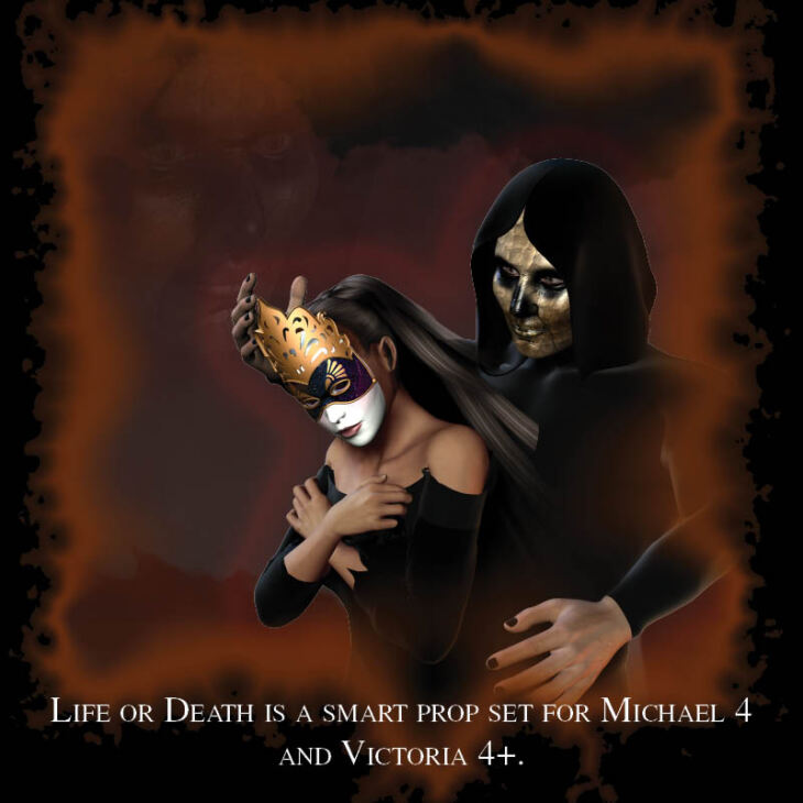 Live or death is a smart prop mask set for Michael 4 and Victoria 4. The are three smart props, A mask for Victoria 4+, a mask and hood for Michael 4.