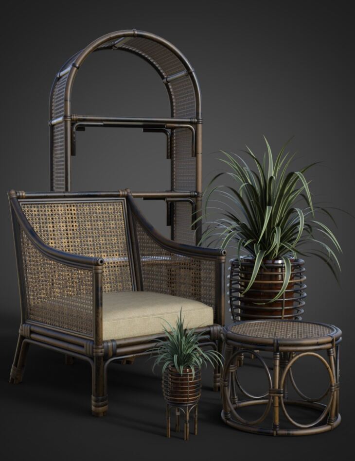 B.E.T.T.Y. Rattan Livingroom is a set of 12 detailed Rattan Furniture props. With 2 material variations for each, they make a great redecoration choice for any living room scene.