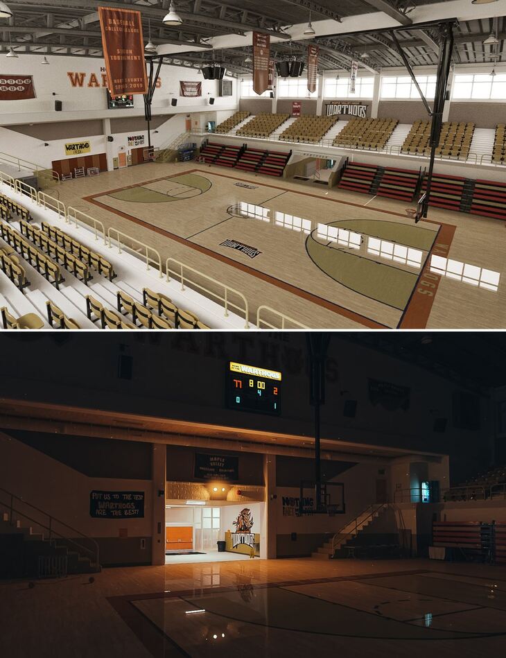 Complete with tons of Props, the Basketball Gym is ready for your sports, high school, university, cheerleading and game scenes.