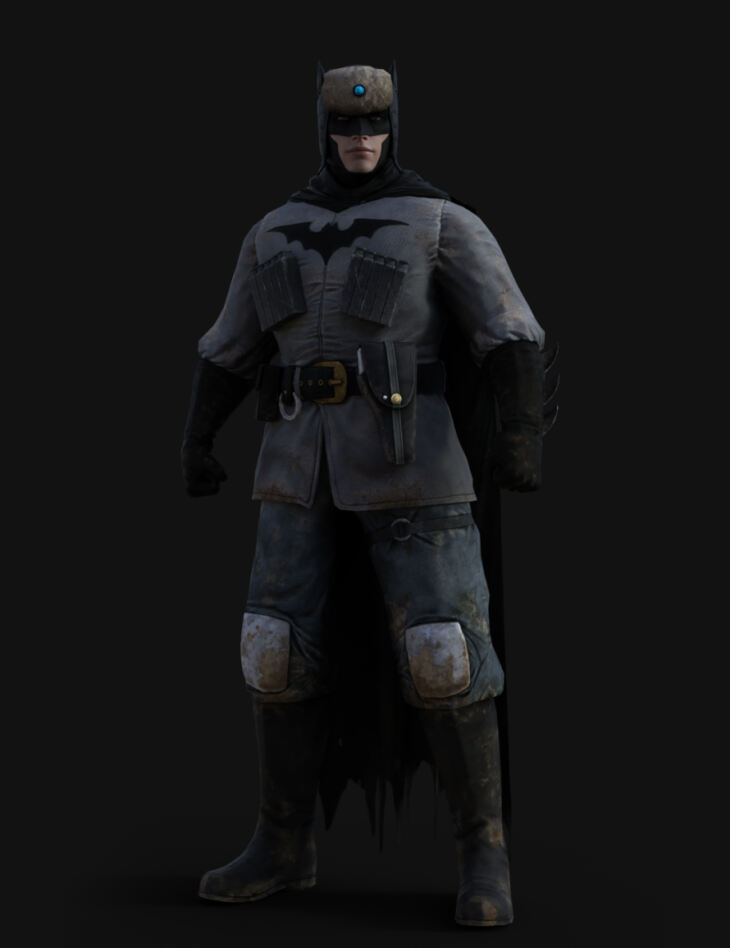 The cape and the top both have dForce applied for posing. The suit is broken down into 4 pieces as follows. The bottom, top, cape and cowl. There are extra Gear that is broken up into 3 pieces and all load with the same icon.