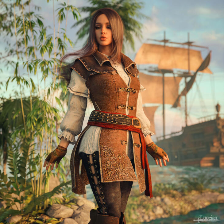 Corsair Dobart Armor Set is a Black Desert official outfit converted for genesis 8 female(s).