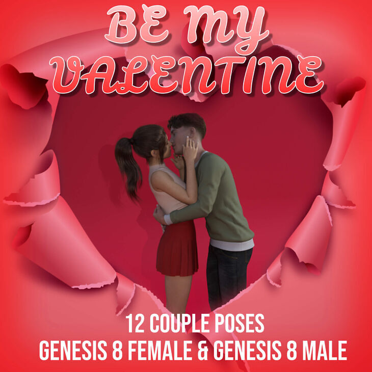 Be My Valentine - Pose Pack is a pack of 12 realistic couple body poses for Genesis 8 Female & poses for Genesis 8 Male.