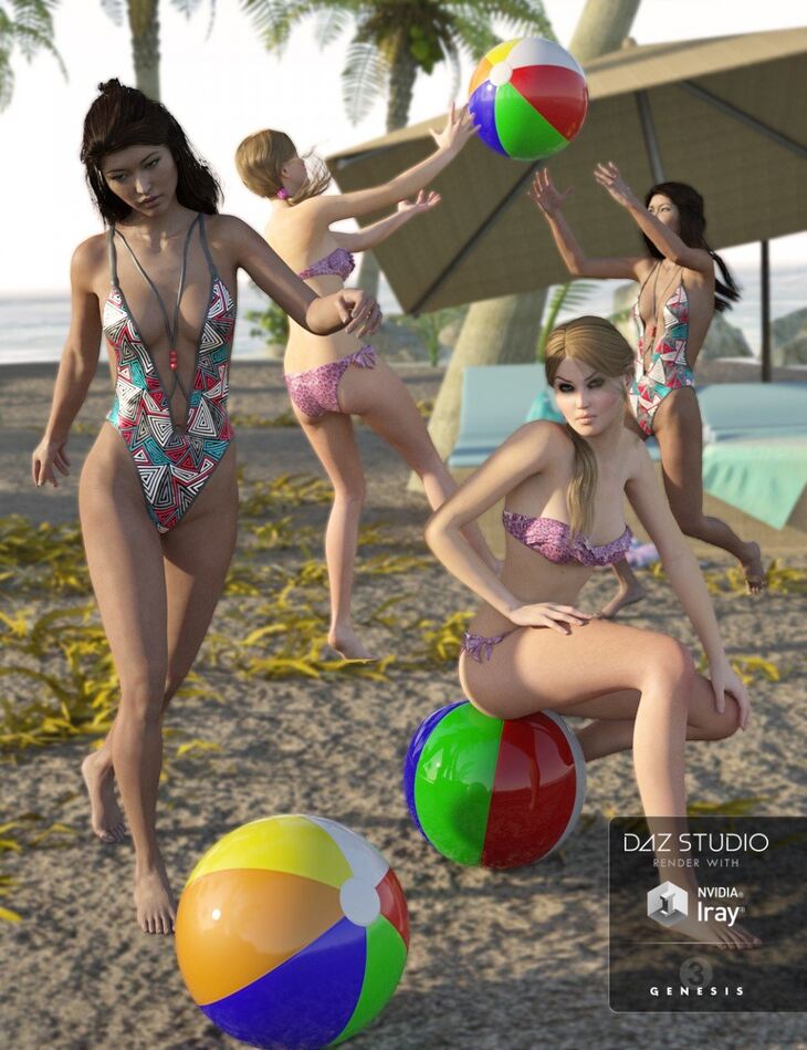 The poses were crafted from actual beach babe pinups and beach ball action sequences to give you the most accurate poses for your rendering pleasure.