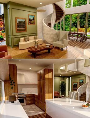 Rich in details is composed of a typically English-inspired wooden bench, Bench in an English Garden is a set of 3 different species of trees, a set of bushes and flowers composed of more than 25 elements and a ground where run the ivy on volume turf.