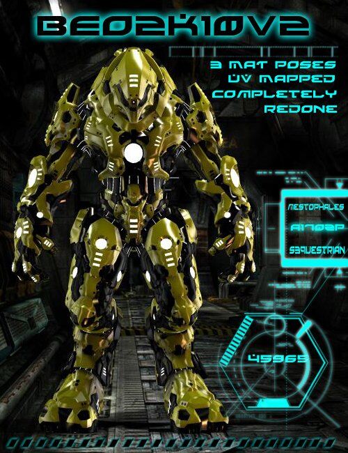 Modeled in ZBrush & 3D Studio MAX - Mestophales brings you the BEO2K10, an original Poser figure. Three MAT poses, eight poses and one weapon prop makes this a must have for your runtime.