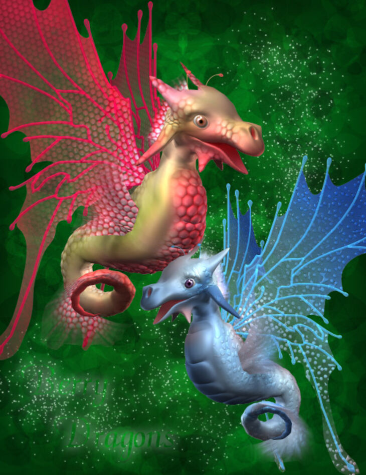 Berry Dragons. This pack includes seven texture sets for Ryverthorne's Faerie Dragon and a new eye figure to give the dragon cute "toony" eyes with matching textures.