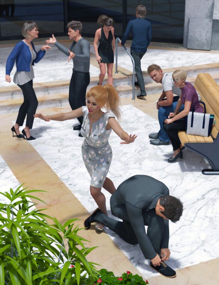 Give your Genesis 8 characters a chance to unwind between meetings with Between Meetings Poses for Genesis 8, consisting of 9 two-person vignette 3D digital pose presets.