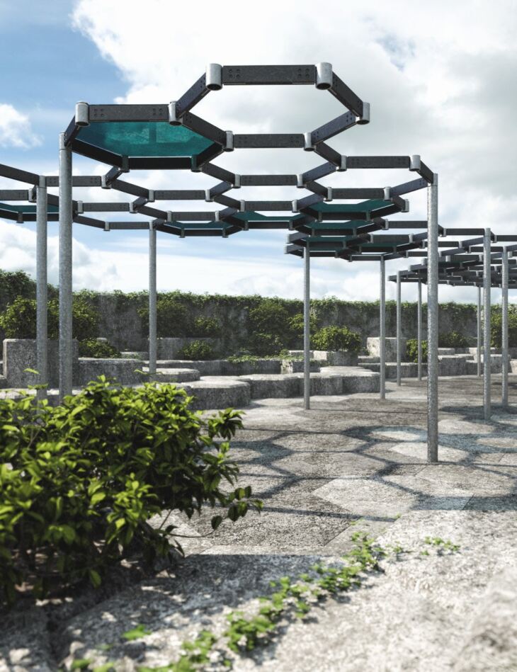 Bikuben is an environment were you can sit, rest, or even play amongst the shadows of the hive blocks. Perhaps you'd prefer a more serene paddle within the small pool, surrounded by greenery. Wherever you want to meet, make Bikuben a place to be.