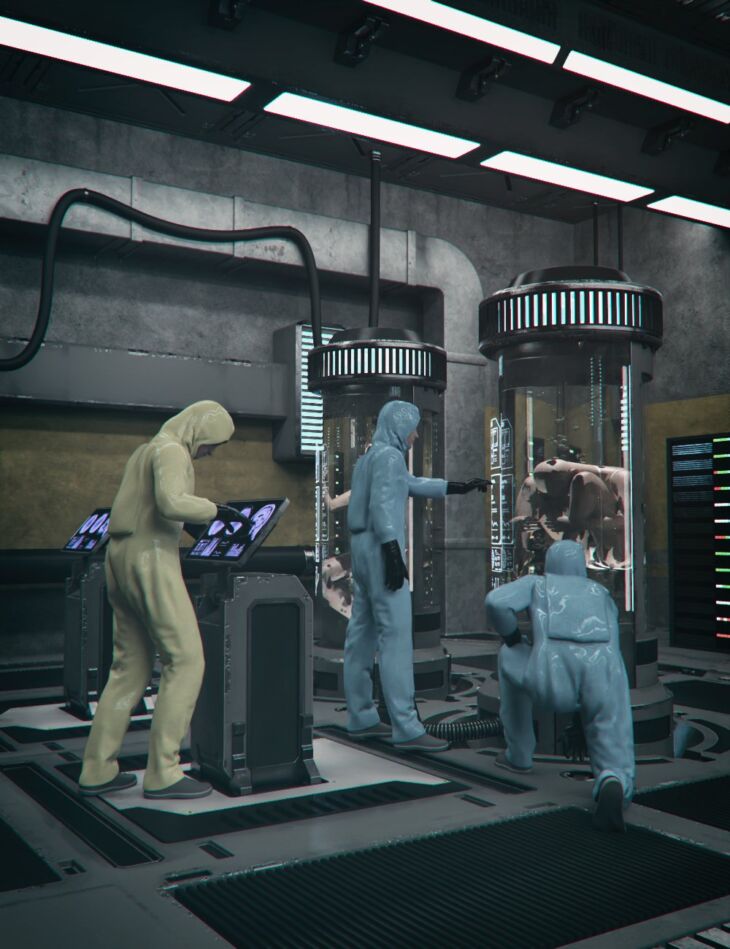 This is a modular sci-fi laboratory set with 28 unique parts. Get started quickly with the ready-to-use example scene, or easily modify the scene to fit your own needs. You can use the snapping options to move items more easily. 16 scene-related poses are included for Genesis 8 characters.