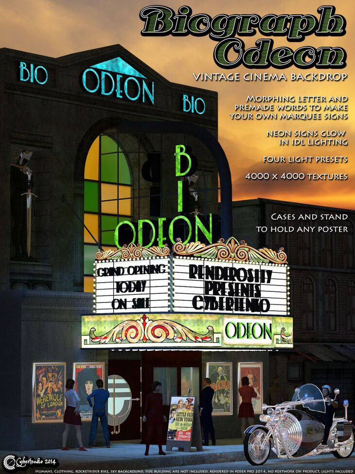 Old vintage cinema building backdrop figure with various frequent words to be displayed at marquee and morphing letter to build any text you might desire. Three day time multilight preset and one single light preset. Suitable to any present or period renders.